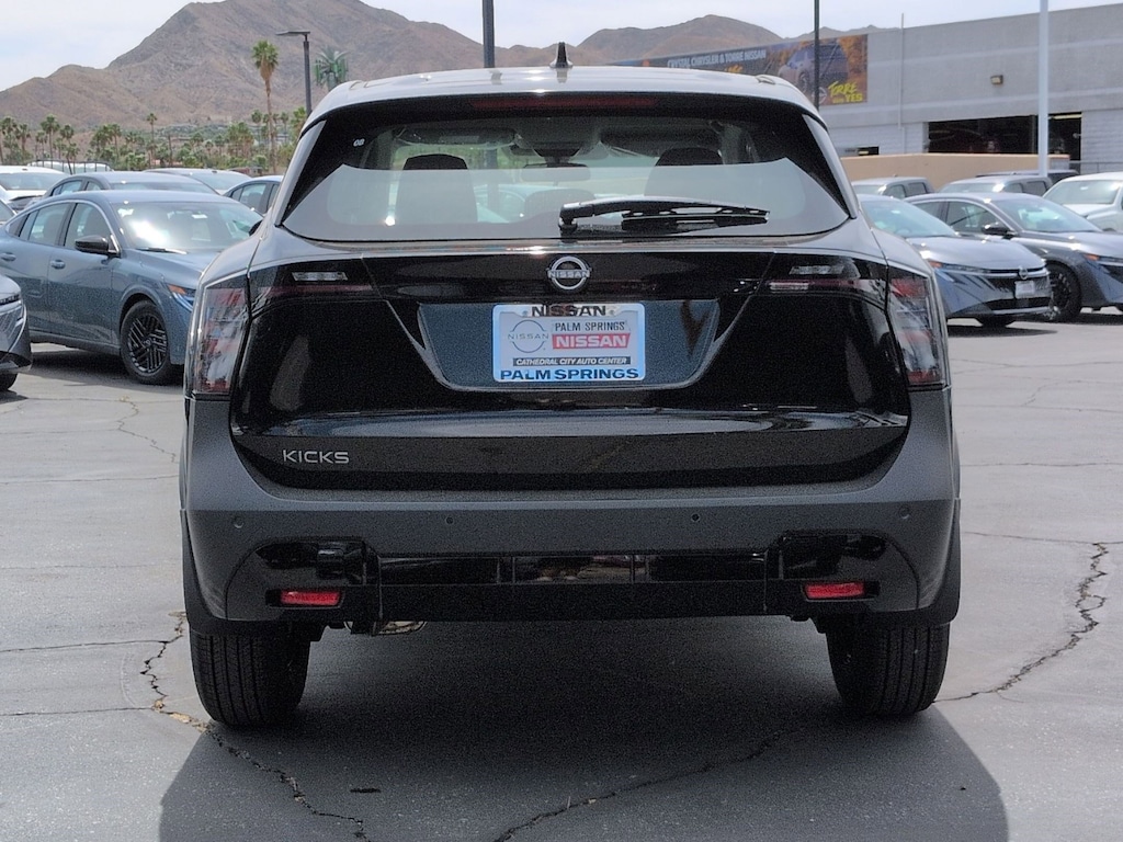 $993 off MSRP! Welcome to Palm Springs Nissan, the leading Nissan dealership proudly serving Cathedral City, Palm Springs, La Quinta, Indio, and the entire Coachella Valley. We offer a massive selection of new Nissan cars, trucks, and SUVs, including the Altima, Sentra, Rogue, Murano, Pathfinder, Frontier, and Titan, plus the innovative all-electric Nissan ARIYA and LEAF. Looking for a great deal? Explore our extensive inventory of certified pre-owned Nissans and quality used cars from all major brandsâ"all priced competitively to fit your budget. Whether youâre shopping new or used, our finance experts make it easy with flexible auto loans and lease specials designed to save you more. Our state-of-the-art Nissan Service Center is staffed with factory-trained technicians who use genuine Nissan parts for everything from routine maintenance to complex repairs, keeping your vehicle running at its best. Conveniently located in Cathedral City, CA, weâre just minutes from La Quinta and Palm Springs, making us the #1 choice for Coachella Valley Nissan shoppers. If youâre comparing us to Torre Nissan in La Quinta, youâll find that Palm Springs Nissan delivers bigger selection, better pricing, and a customer-first experience every time. Super Black 2026 Nissan Kicks S Dealer Discount of $993 off MSRP FWD CVT with Xtronic 2.0L DOHC